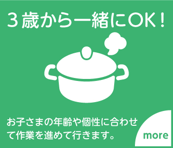お父さま、お母さまがレッスンを受けている最中は教室に待機している専門の保育士さんにお子さまを預けることが可能なので、集中して料理に取り組むことができます。